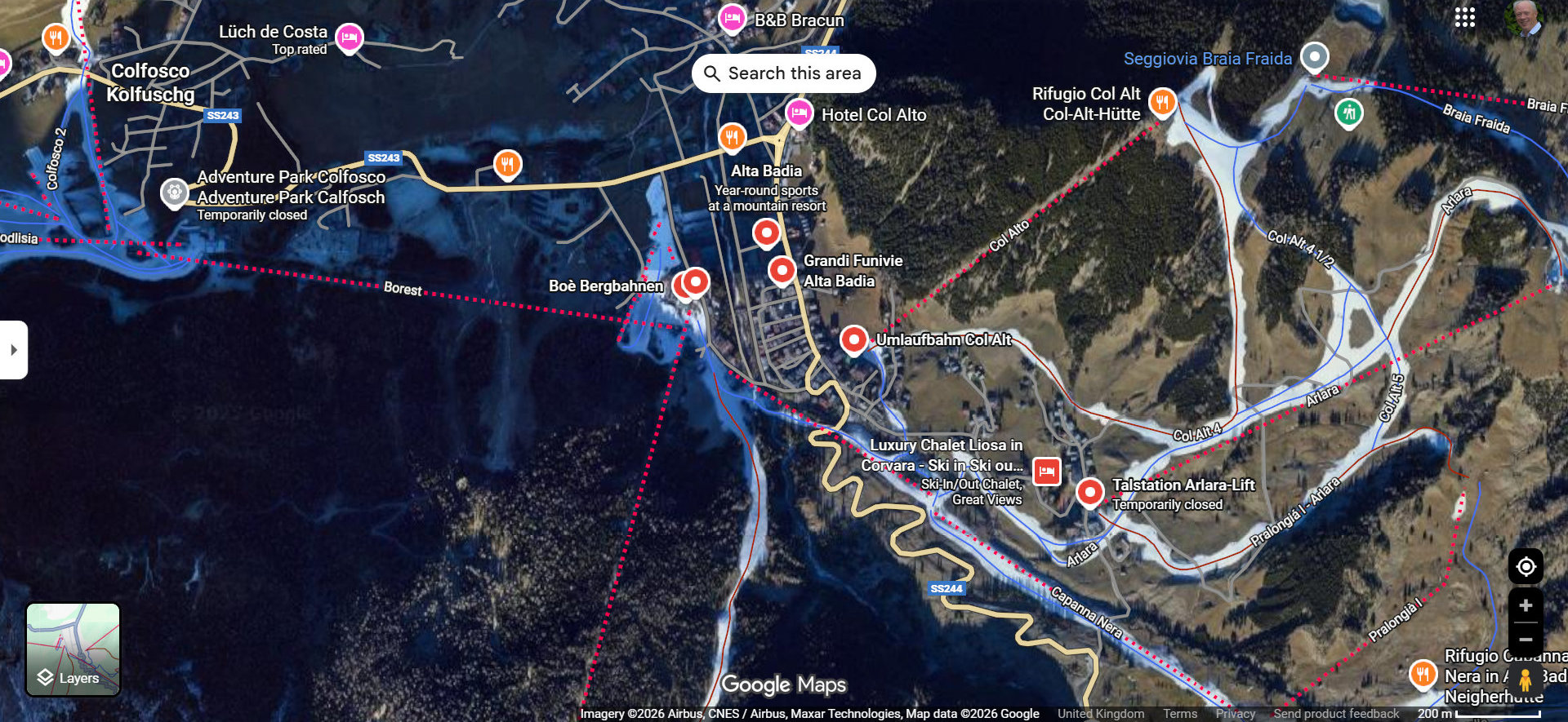 From Corvara, you can ski directly to other villages within the Alta Badia region such as Colfosco, San Cassiano, and La Villa, or you can access the Sella Ronda circuit to ski to ArabbaVal Gardena (Selva), and other Val di Fassa villages. The Dolomiti Superski pass also provides access to deeper into Cortina and other interconnected or nearby areas, offering a vast network of slopes.