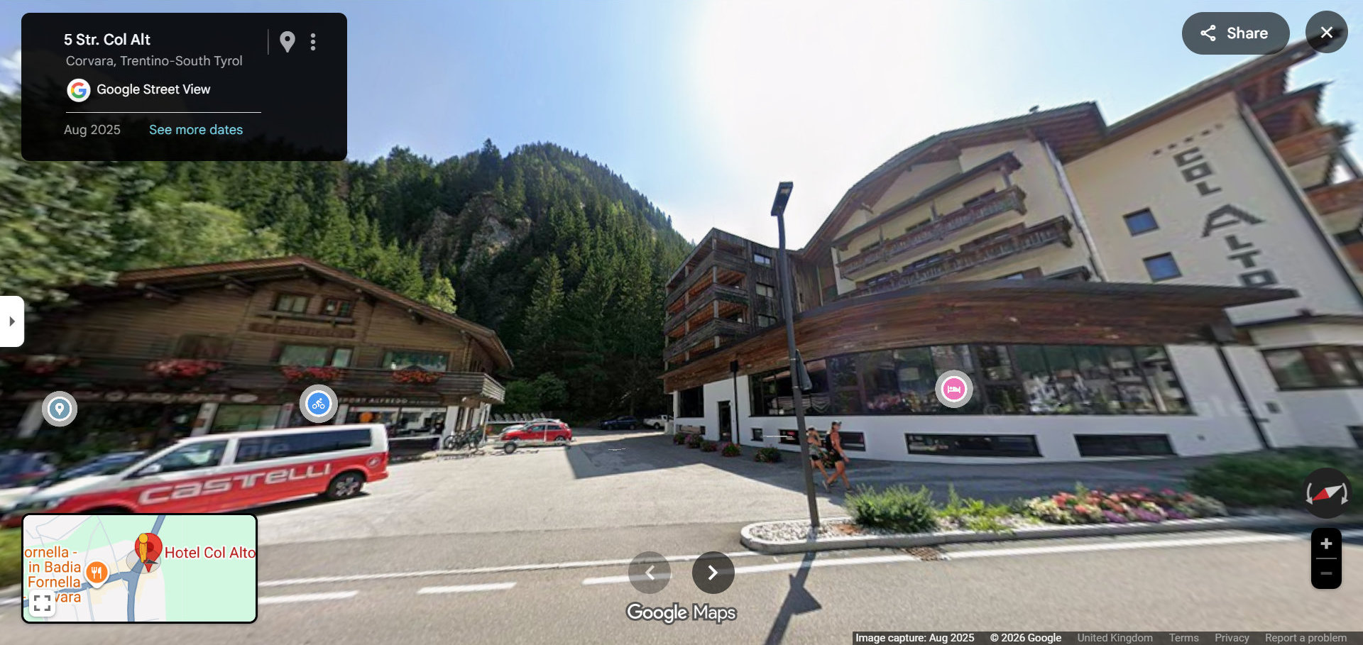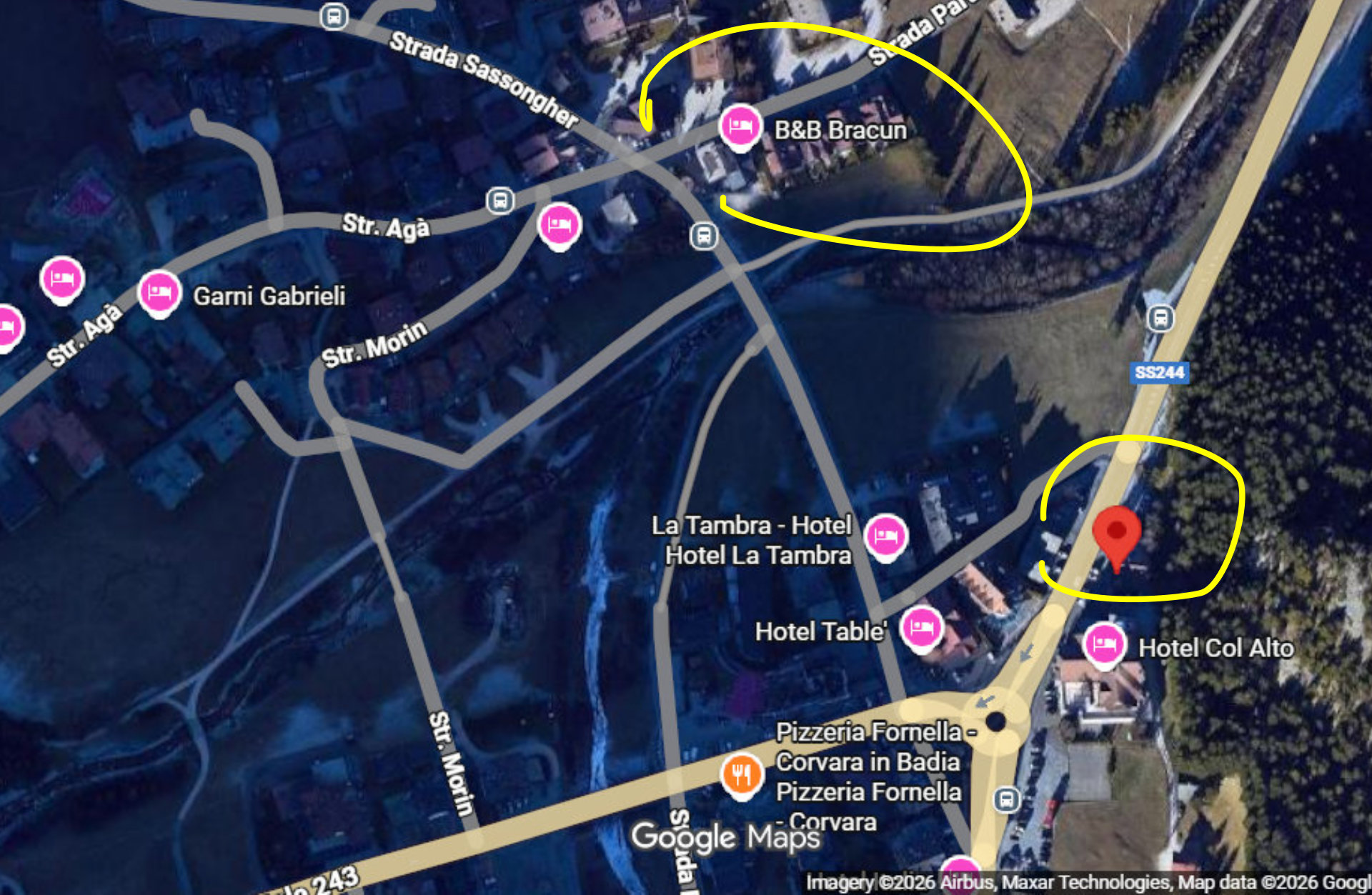 We are directly at the beginning of the village near the Hotel Col Alto. Open in Google Maps